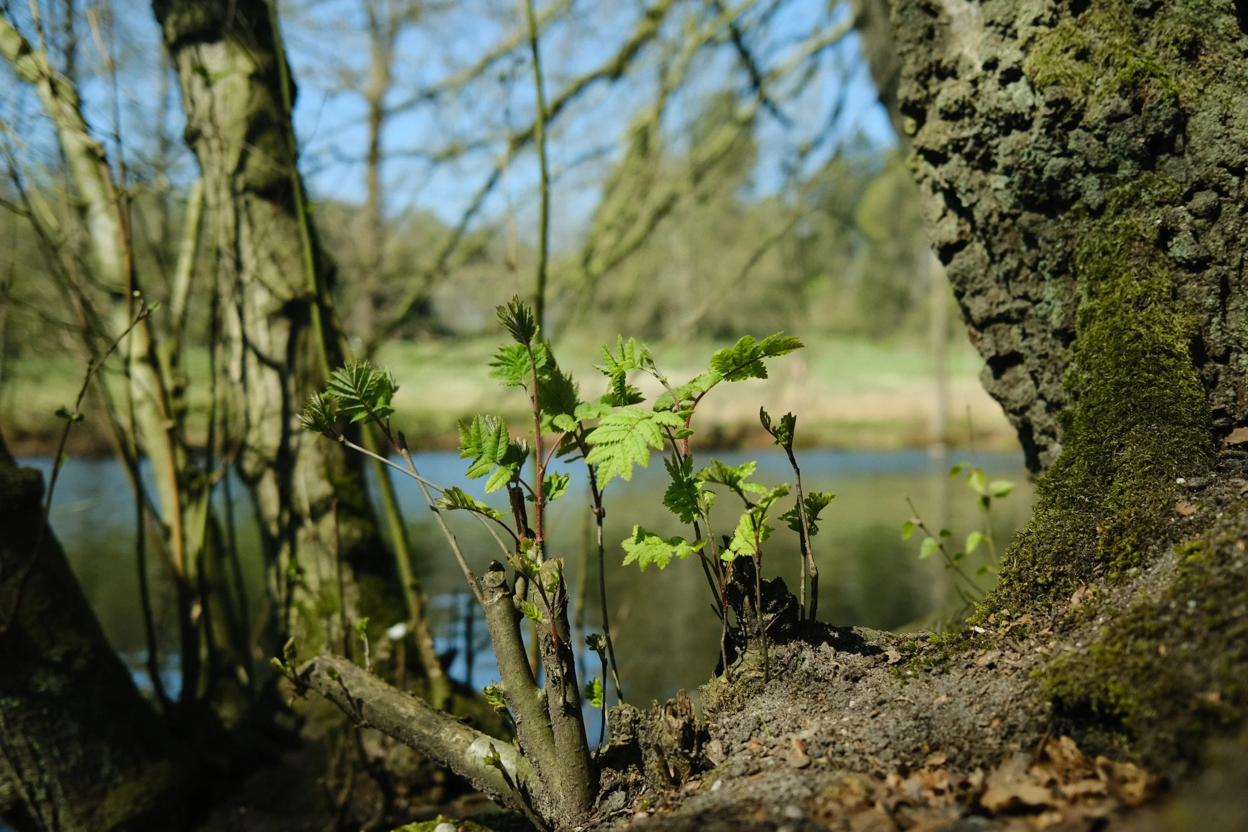 Toen ik aan kwam lopen, zag ik alleen een meertje. Maar toen ik ging zitten, zag ik meer en meer. Ik zag het hout onder het water. Ik zag de reigers nesten bouwen in de bomen. Ik zag de varens zich uitrollen van hun winterslaap. Ik zag de schittering in het water. Ik hoorde het water kletteren van de waterval iets verderop. Ik zag de verschillen in kleuren in de bomen. En toen klikte het. Als ik vluchtig kijk, dan zie ik een meertje, dan zeg ik: “mooi” en loop ik door. Maar als ik met “aandacht” kijk en echt de tijd neem, dan zie je zoveel meer. Dan zie je waar het echt om draait en niet alleen het oppervlakkige. Dat is wat mist in mijn werk.